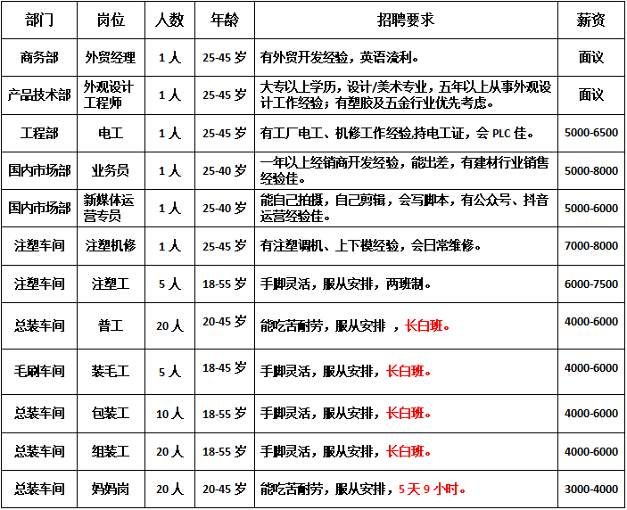 現因業(yè)務發(fā)展需要,急聘以下崗位人員: